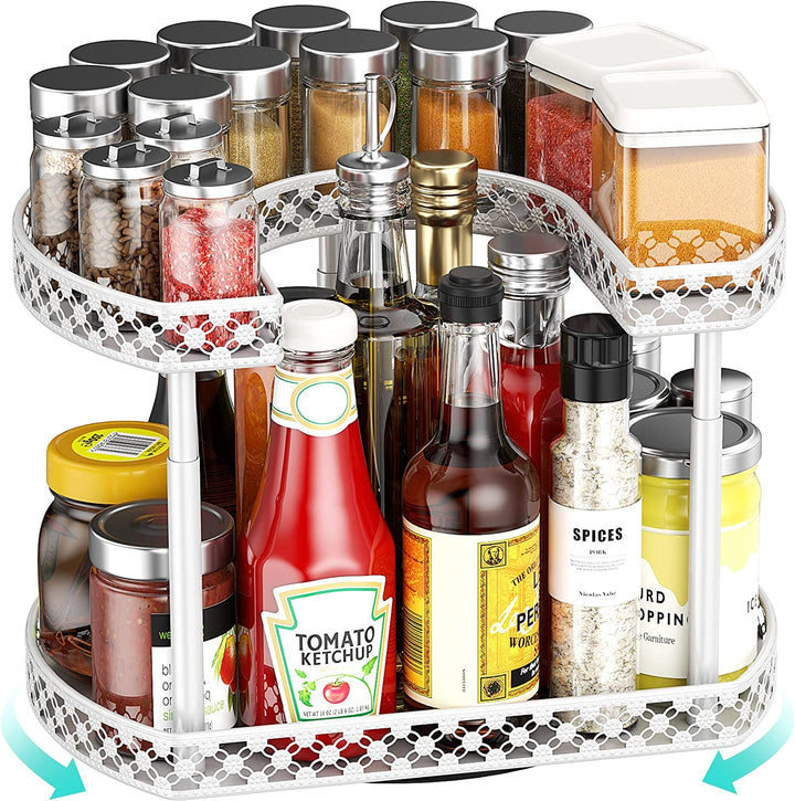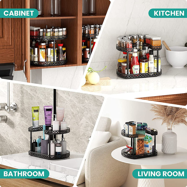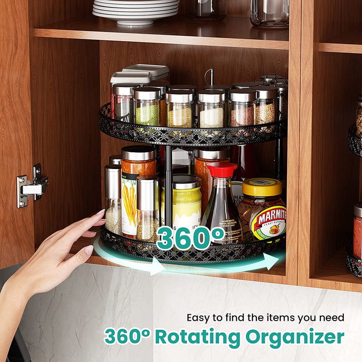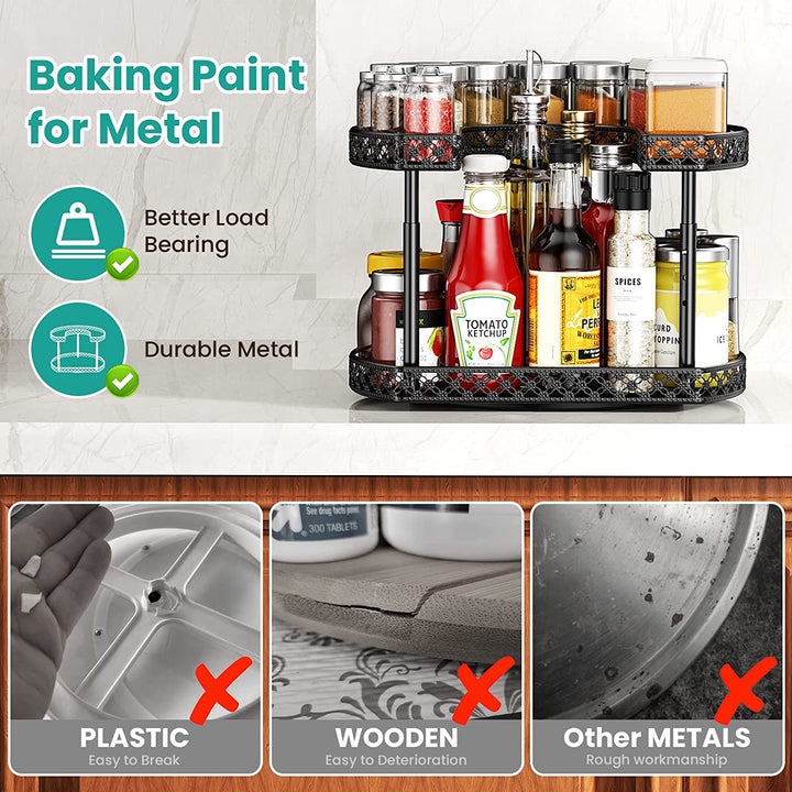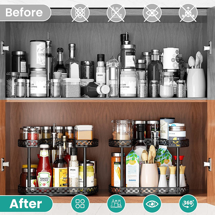 Two Tier Lazy Susan, the perfect solution for effortless organization. With its full metal structure and stylish outlook, this spice lazy susan not only adds a touch of elegance but also provides easy access to your essentials. Say goodbye to clutter and hello to convenience with this turntable organizer. Elevate your organization game today!